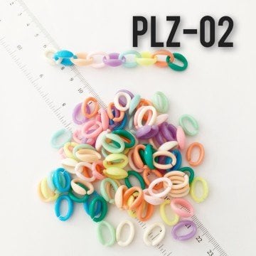 PLZ-02 Karışık Renk Plastik Zincir Boncuğu 16 x 11 mm
