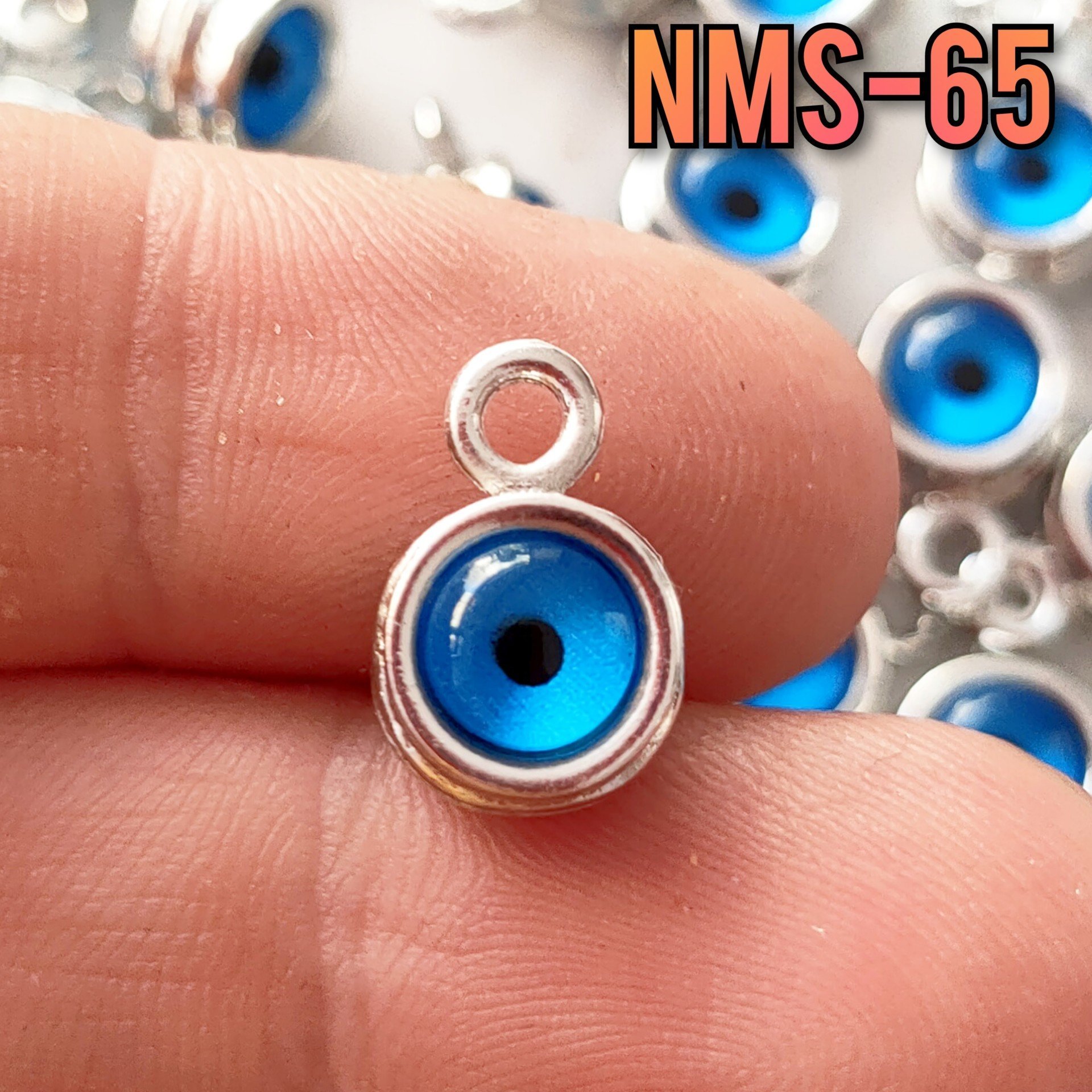 NMS-65 Rodyum Kaplama Deniz Mavi Gözlü Kulp Sallantı